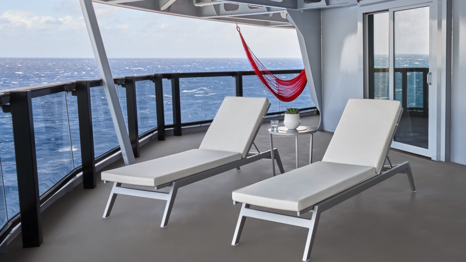 Wrapping panoramic views from the corner of the ship are emphasized by our design choices, our pieces were designed with thoughtful space to maximize sea views from any angle.