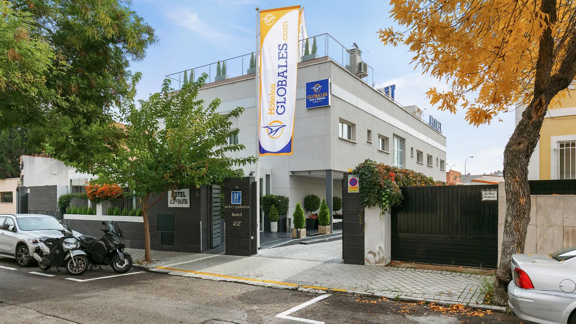 "The Hotel Globales Acis & Galatea has 45 fully equipped rooms to make your visit to Madrid as comfortable as posible. Tranquility for our clients is guaranteed thanks to our ideal location in the residential area of La Piovera, surrounded by a green belt but only a few minutes away from Madrid’s Barajas Airport, the Ifema Exhibition and trade fair centre, the Madrid Municipal Conference Centre and Atletico Madrid new Stadium Wanda Metropolitano."